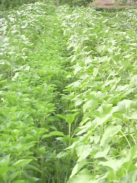 3日の写真では両者の勢いに大差がないものの、ここにきてヒマワリに軍配があがった。このまま放置すればその差がより顕著になるだろう。ただし、緑肥に期待するのは見た目の勢いがどうかだけではない。腐食になった際の質やその生産量の比がどうであるか、さらには土壌の物理性改善や化学性改善にどれほど寄与するかだ。これについては今後の楽しみなタスクとして残ることになるのだが。そういう考えかたを導入するとなると、どうしても狭い範囲にしか適用できなくなるのがあたりまえ。まあ、いわずもがな、わが農場に限った事例ということではある。