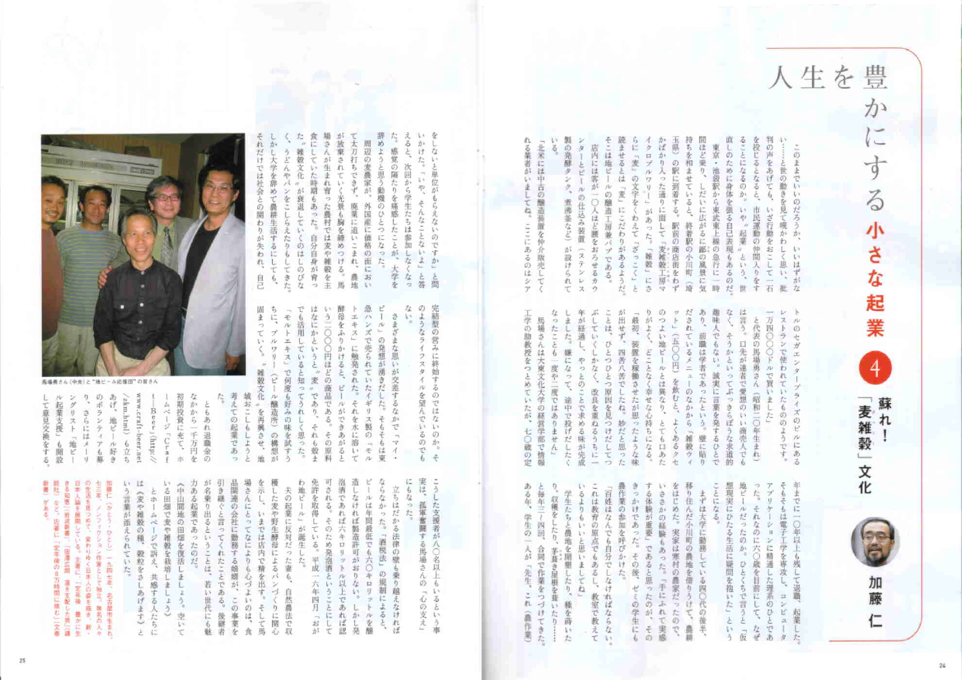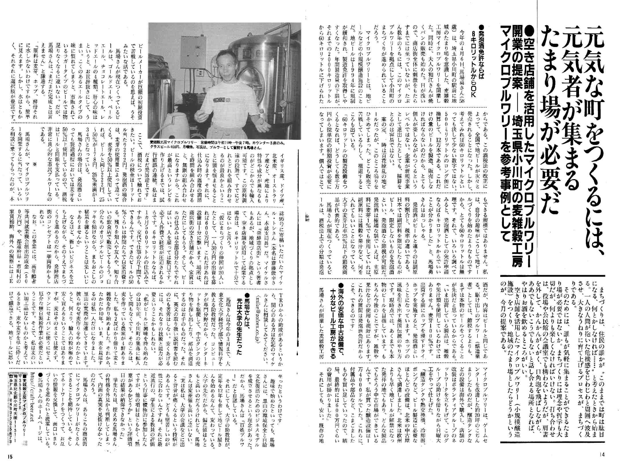 *月刊 頭で儲ける時代 2006/11月号 78〜81頁 「趣味でつくっていた自作の麦・雑穀を活用して地ビールを製造・販売」(注)地ビールで儲けるのはきわめて困難です。