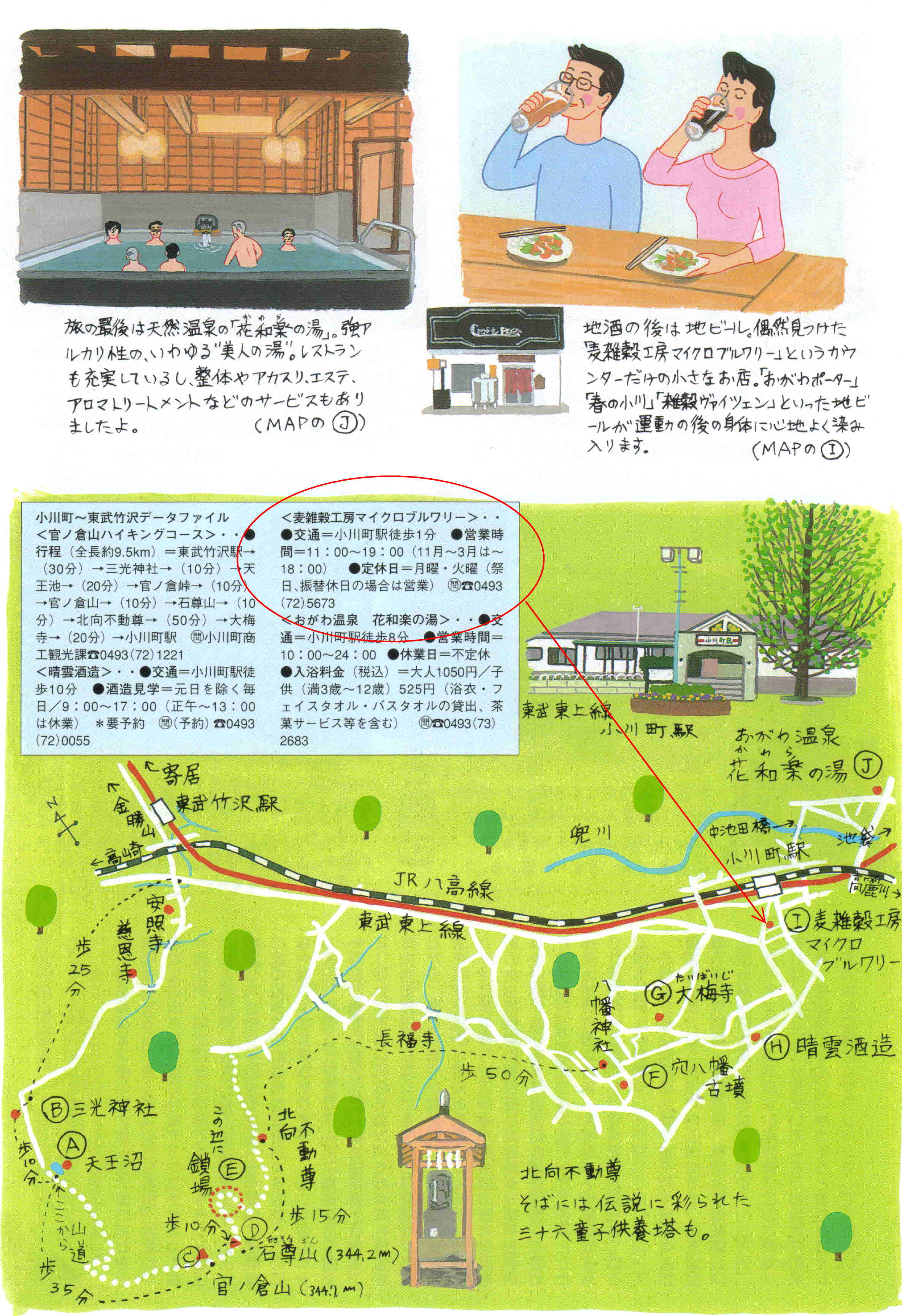 *歩いた後で地ビールを飲むコースの紹介です。 3〜4時間コース=クサリ場がある官の倉コース マンスリー とーぶ 2006/5/1 11p〜14p 新・駅前そぞろ歩記 Onedayスケッチ のんびり歩こう外秩父ハイキング