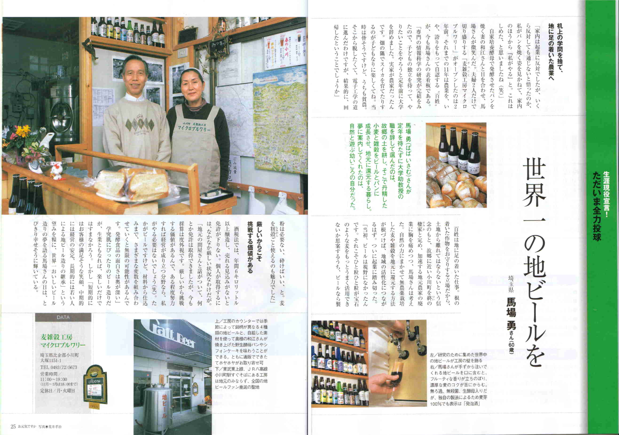 *日経BP/セカンドステージ/人生設計『本当にやりたい仕事って何』 第一回 −夫婦二人三脚で地ビールと野生酵母パンの手づくり工房<その1>− 2005/11/14