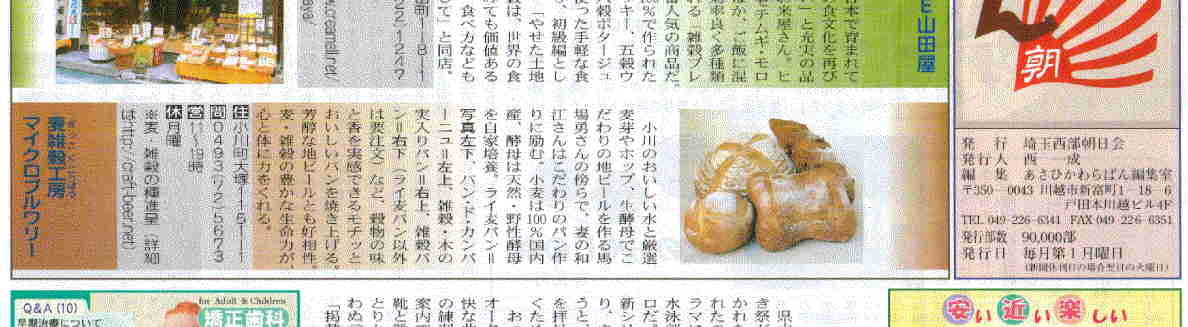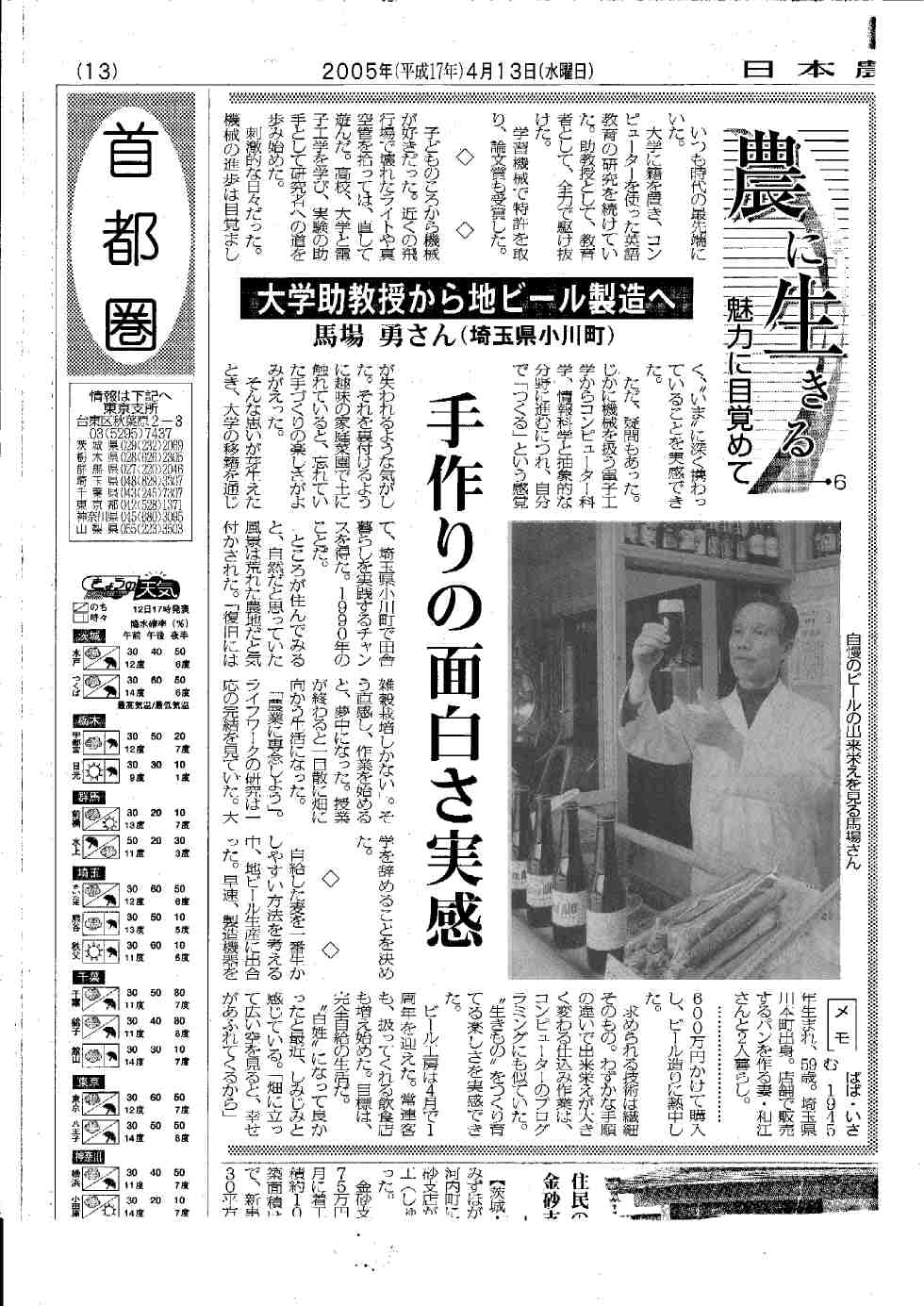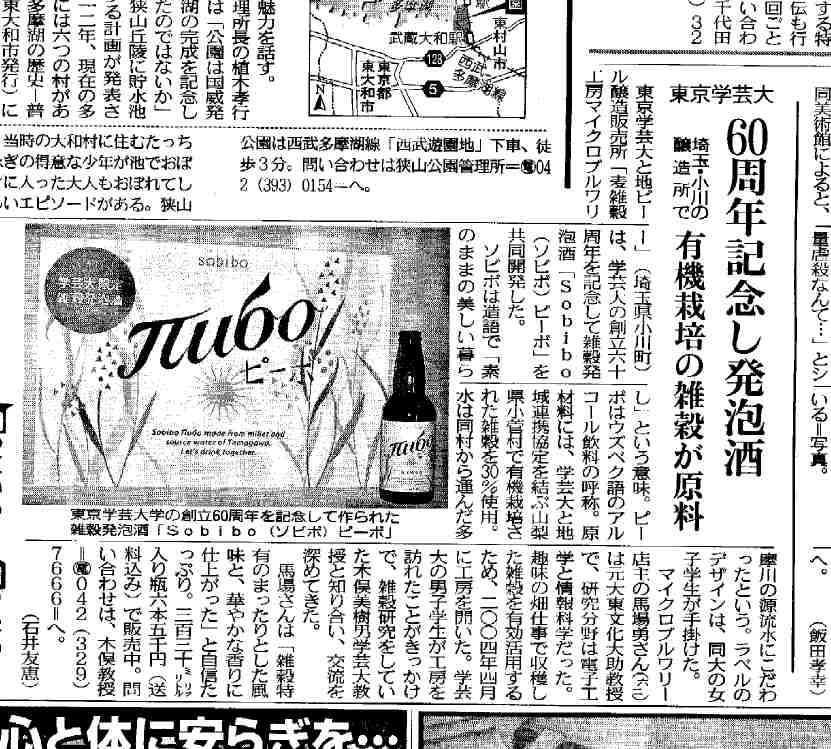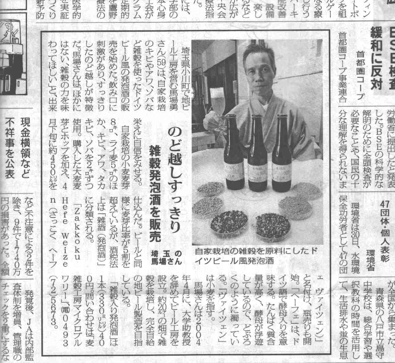 *埼玉新聞 2005/5/26朝刊 14面「西」トップ見出し 「雑穀の地ビール開発」