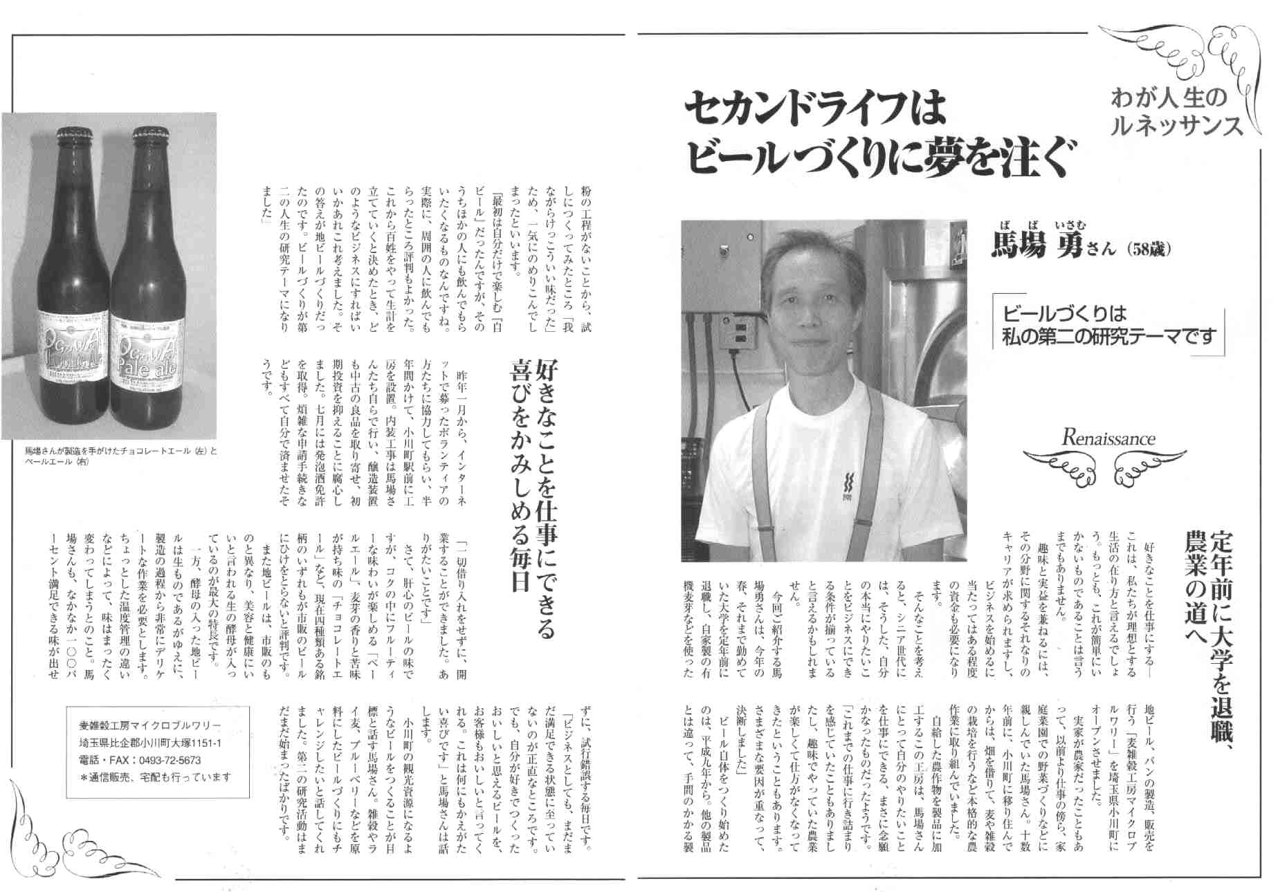 *オンザウェイ 2004/11.12月号 14-15頁 わが人生のルネッサンス セカンドライフはビールづくりに夢を注ぐ