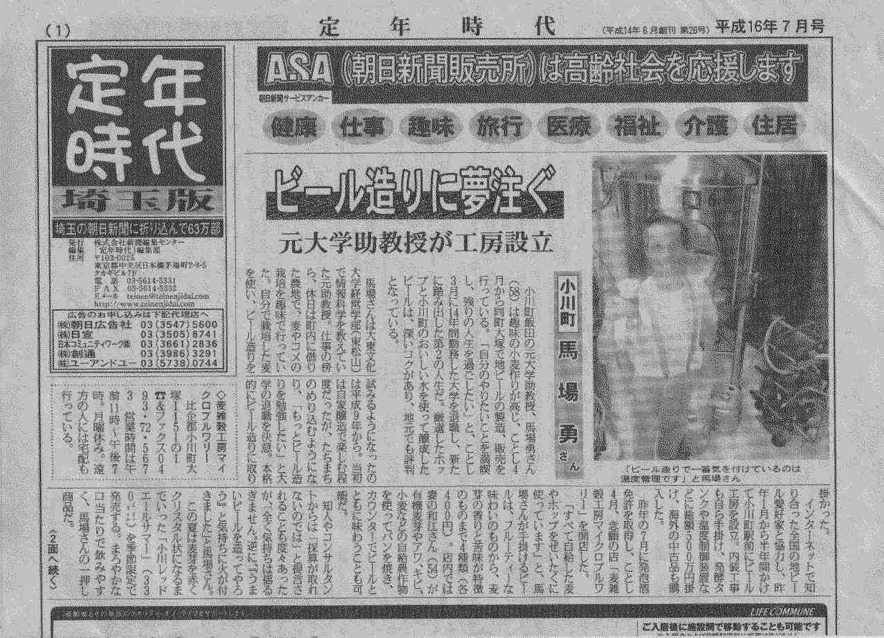 *定年時代 2004/7月号 1面全面 ビール造りに夢注ぐ