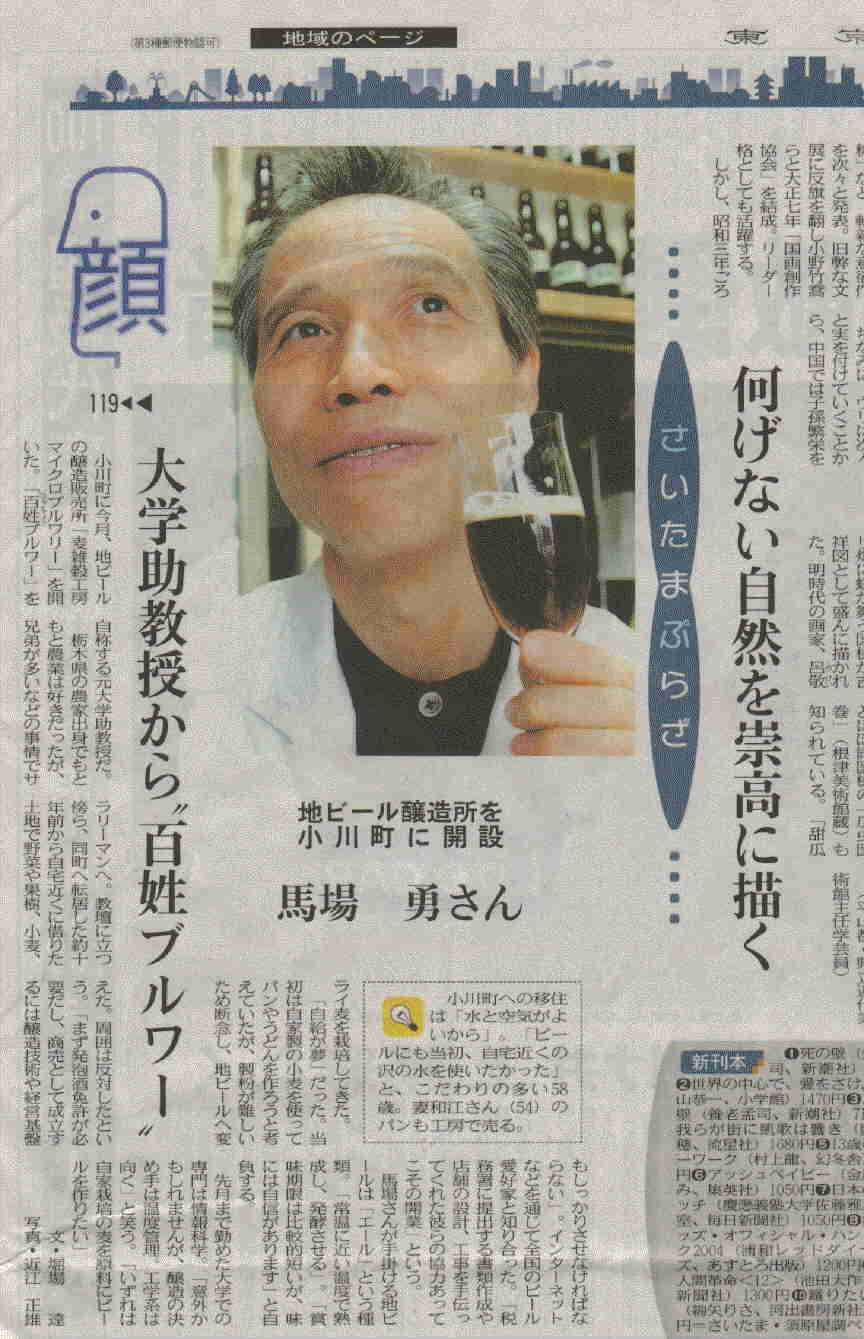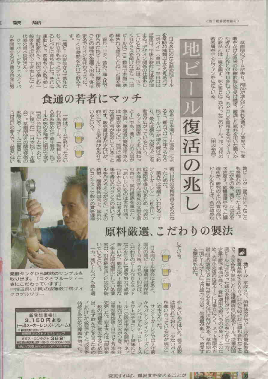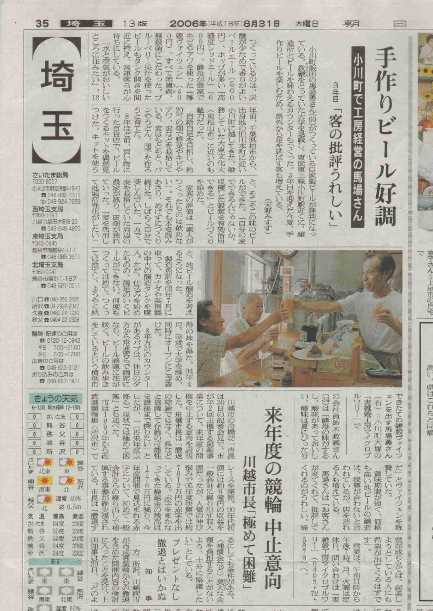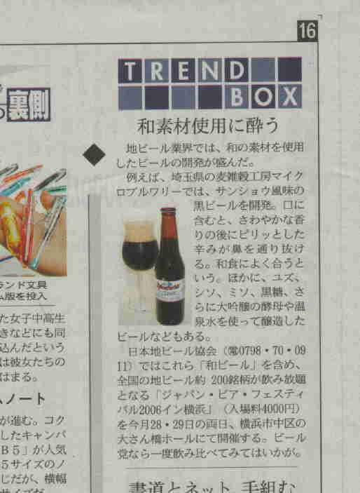 *朝日新聞 2006/8/31 35面「埼玉」手作りビール好調、「埼玉西」には手作りビール飲み頃