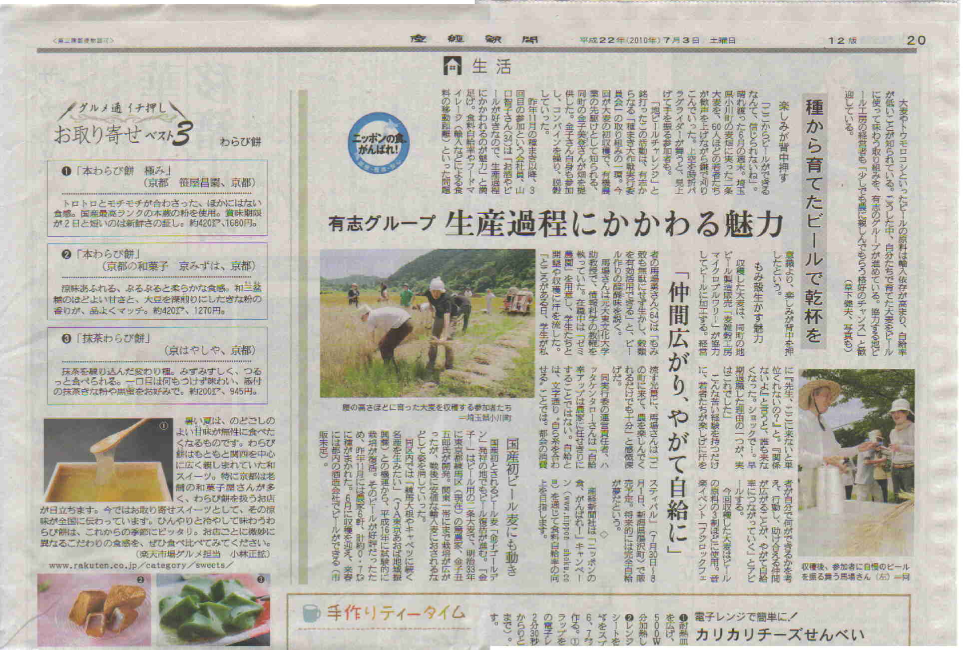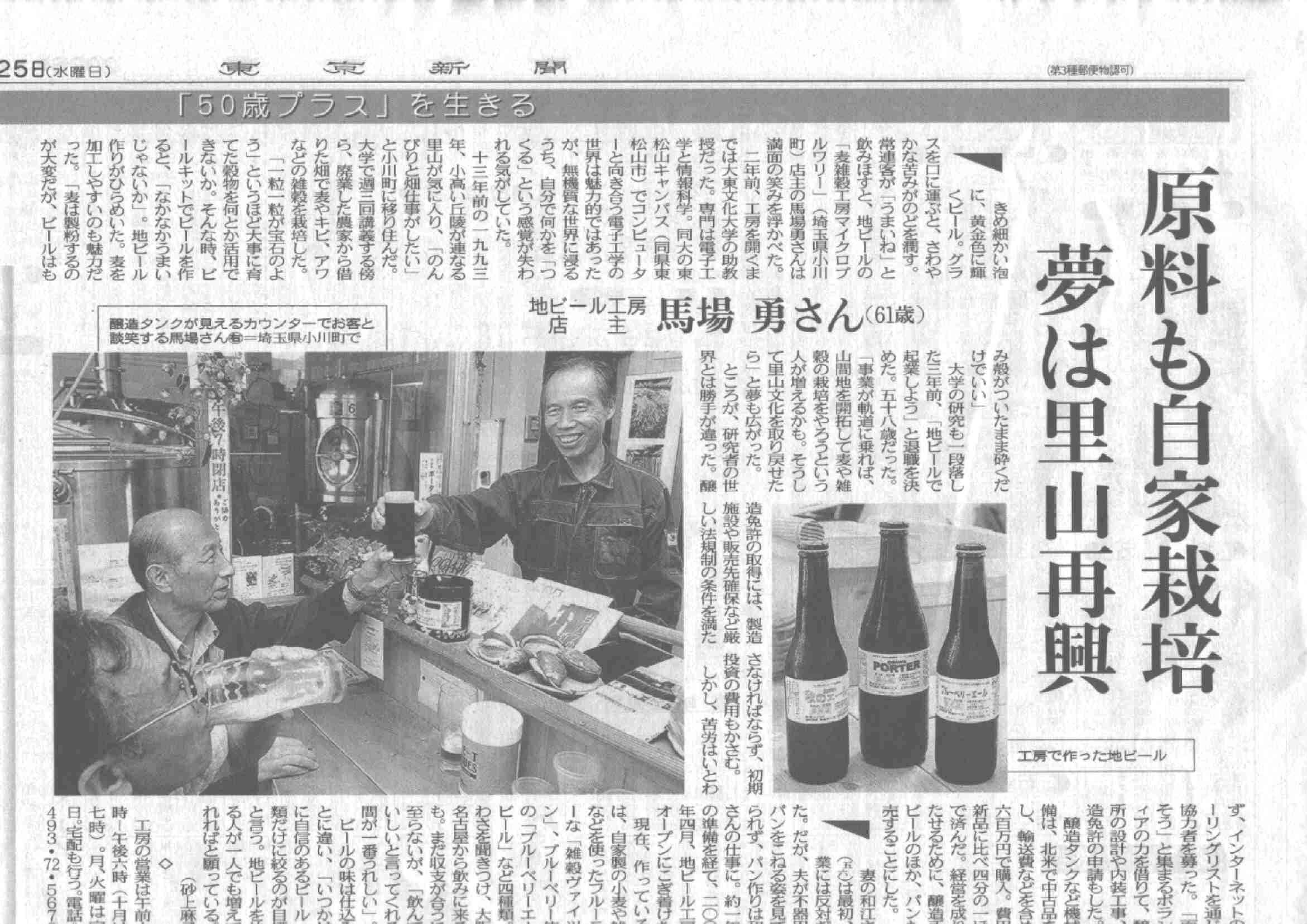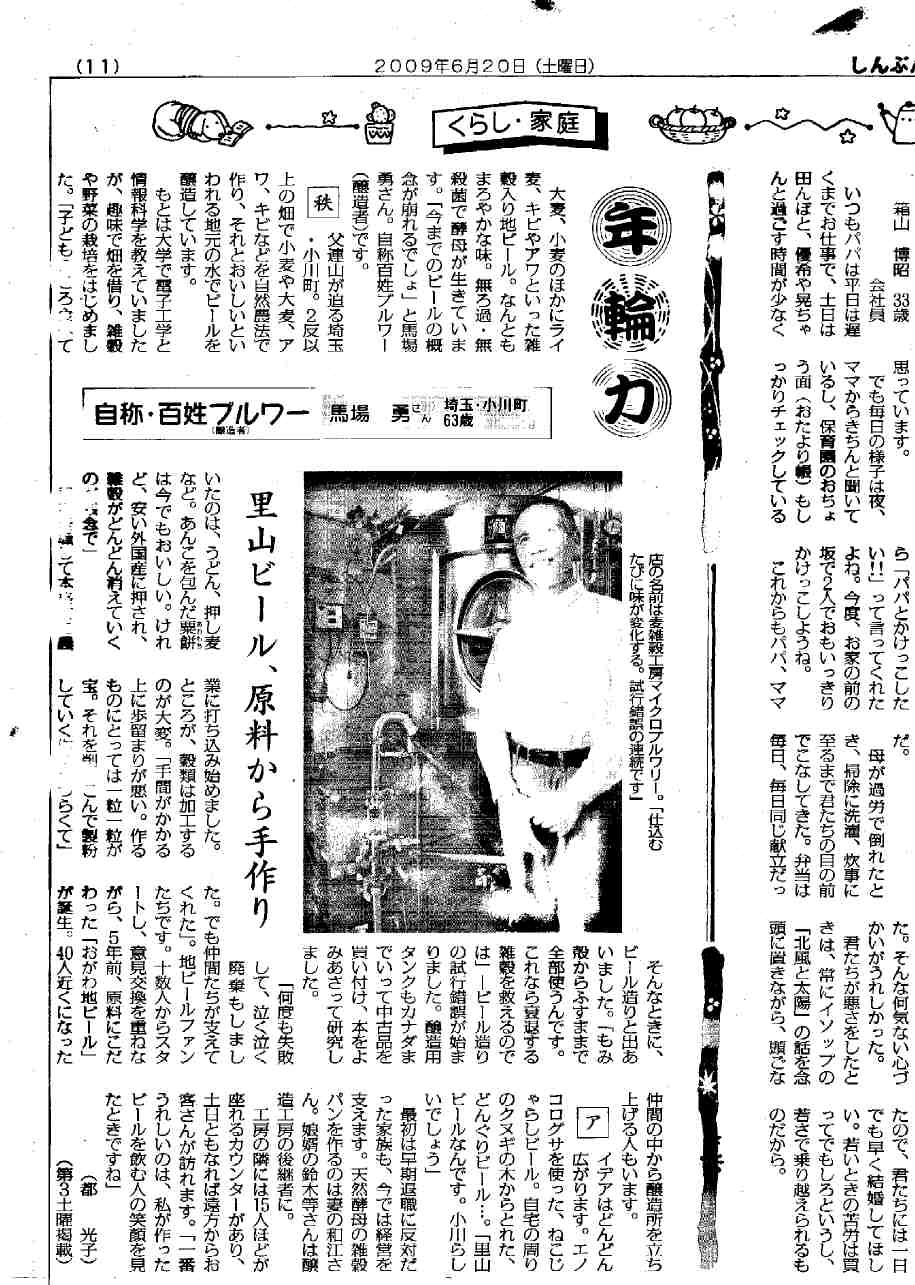 *同紙 社会面「のど越しすっきり雑穀発泡酒を発売」埼玉の馬場さん