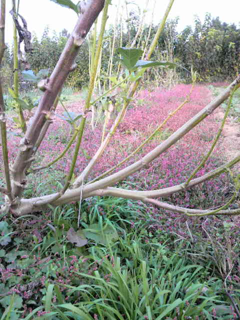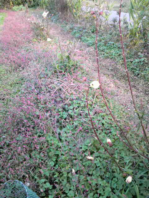 赤く色づいているのはイヌタデ(アカマンマ)の実。