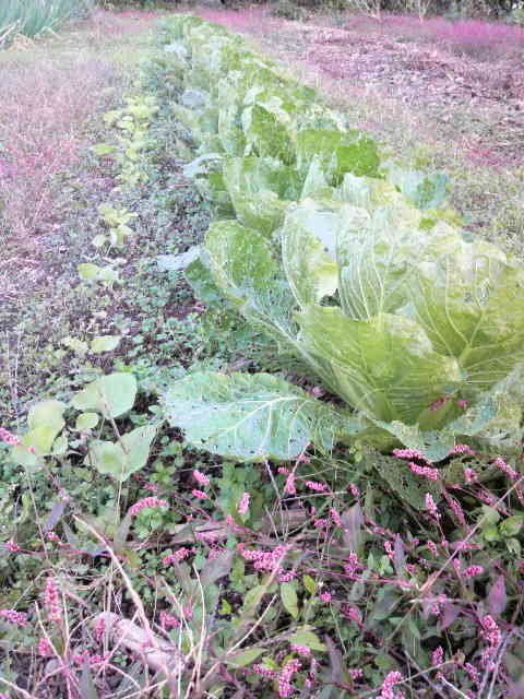 この白菜は8月18日に定植した。例年よりもたいへん早かった。9月中旬以前に定植ないし発芽する野菜畝周辺には、よく発酵してないものや臭いのするものを置かないことが肝要。そうしたものを土に入れるなどもってのほか。虫害が目立つようになるし、だいいちおいしい作物が育たない。