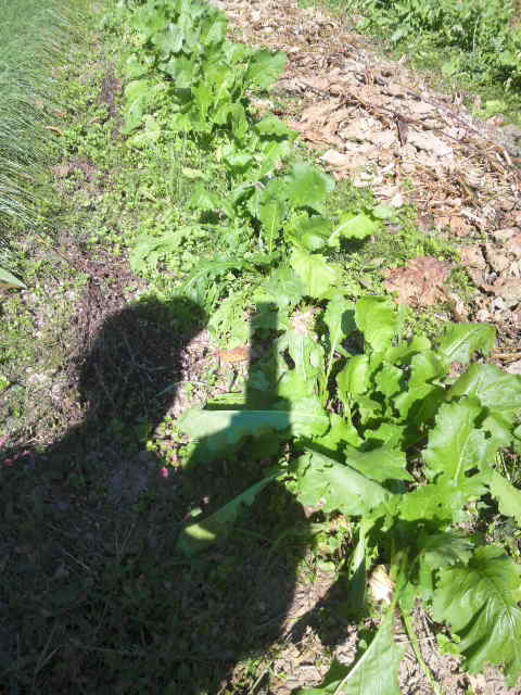 奥に昨年10月播種のゴボウ。