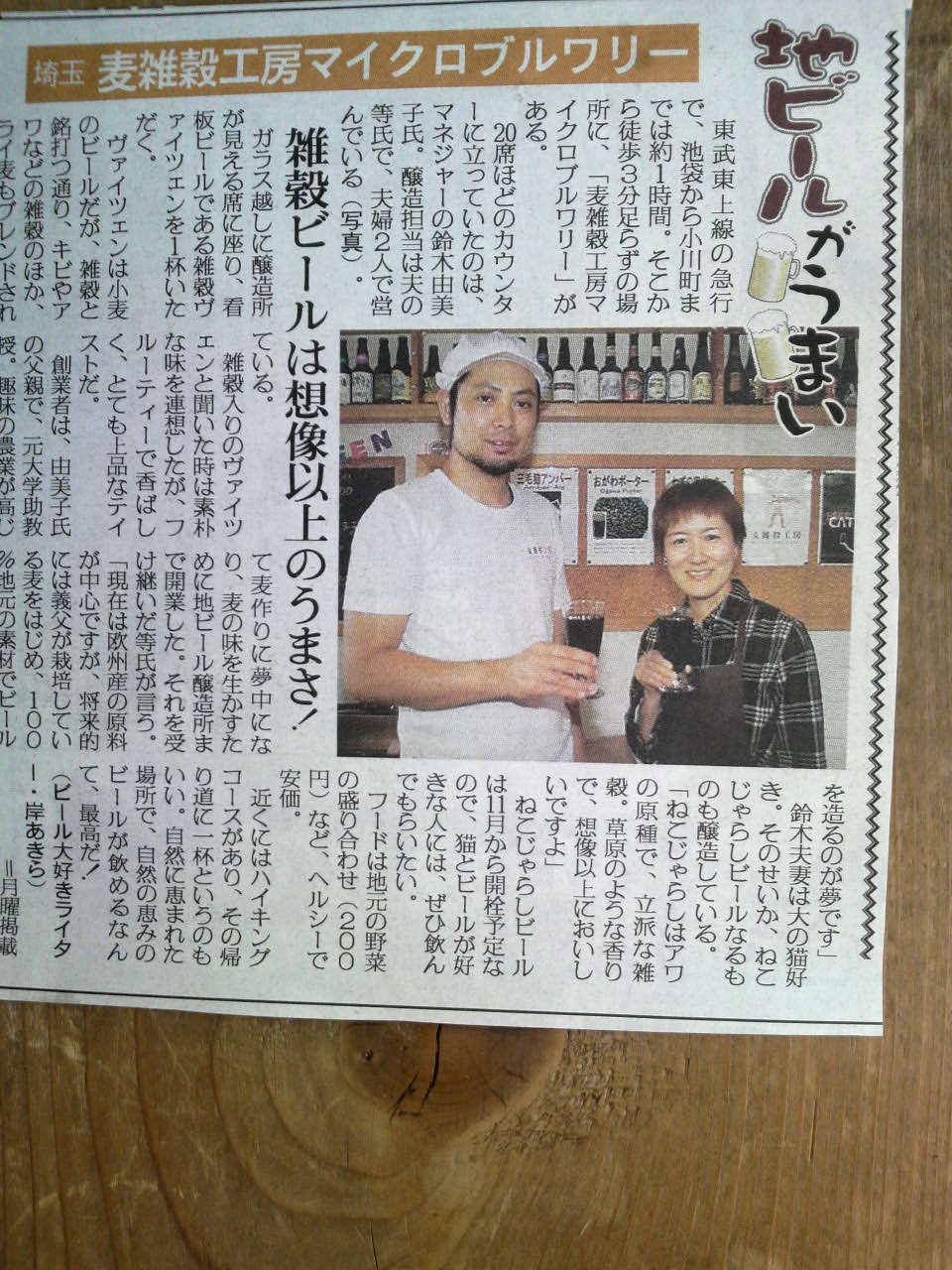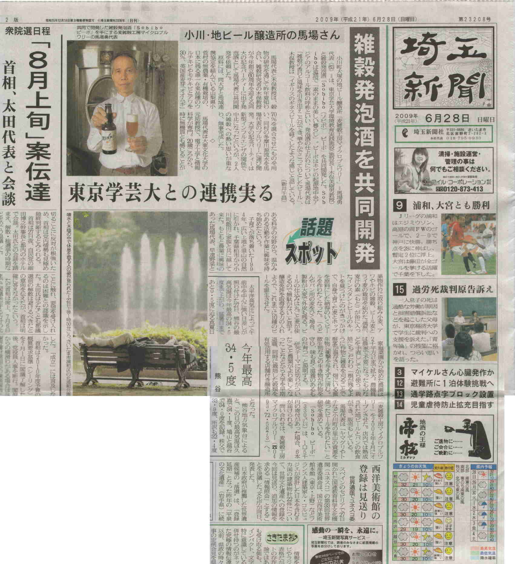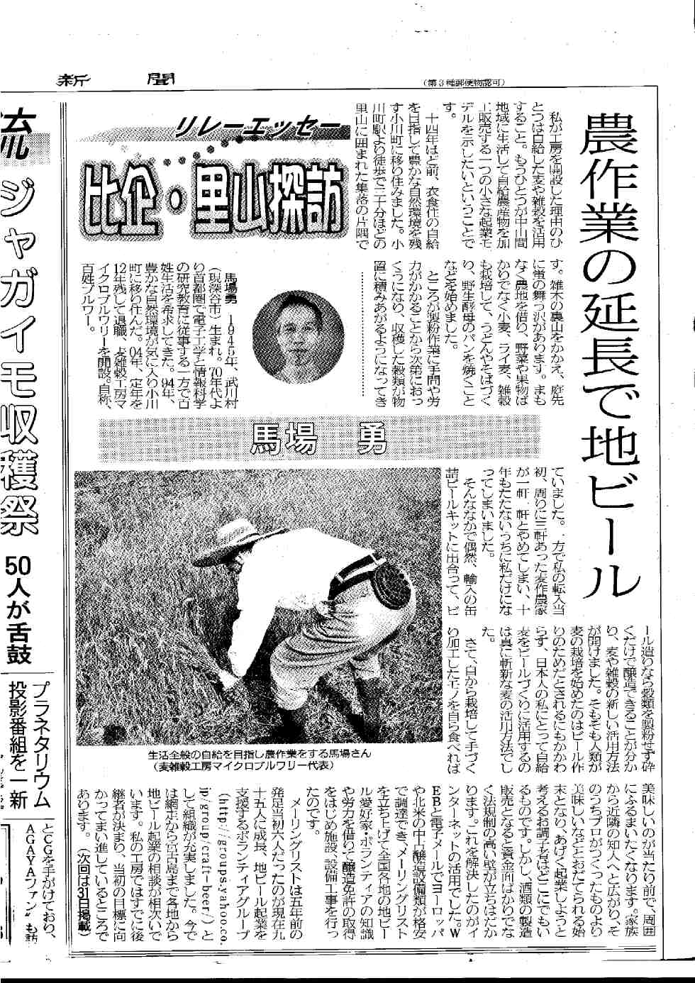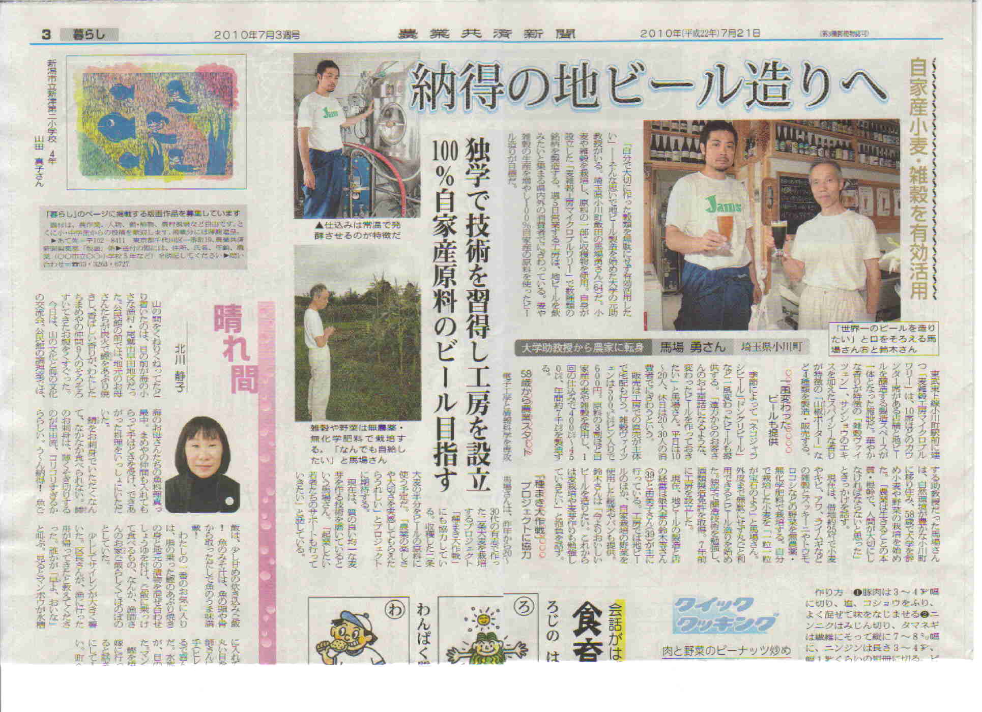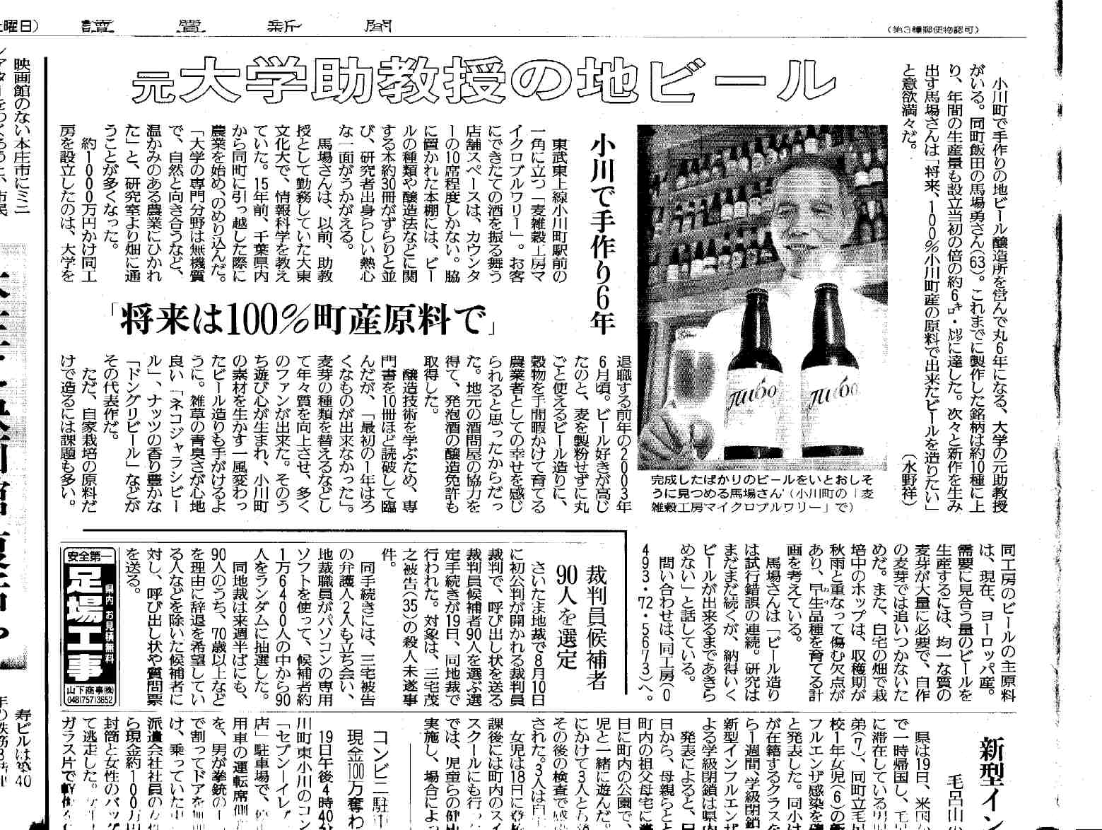 *同紙 社会面「のど越しすっきり雑穀発泡酒を発売」埼玉の馬場さん