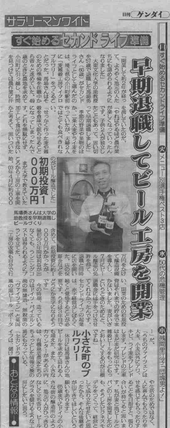*日刊ゲンダイ 2006/3/21 14面 すぐ始めるセカンドライフ準備「早期退職してビール工房を開業」