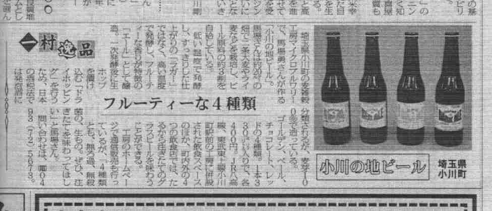 *朝日新聞 2006/8/31 35面「埼玉」手作りビール好調、「埼玉西」には手作りビール飲み頃