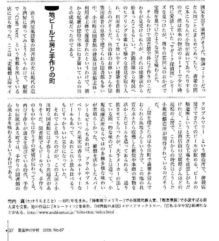 *図書館の学校 2005/10・11月号 37頁 「手作りの町の図書館」の記事に「地ビール工房と手作りの町」